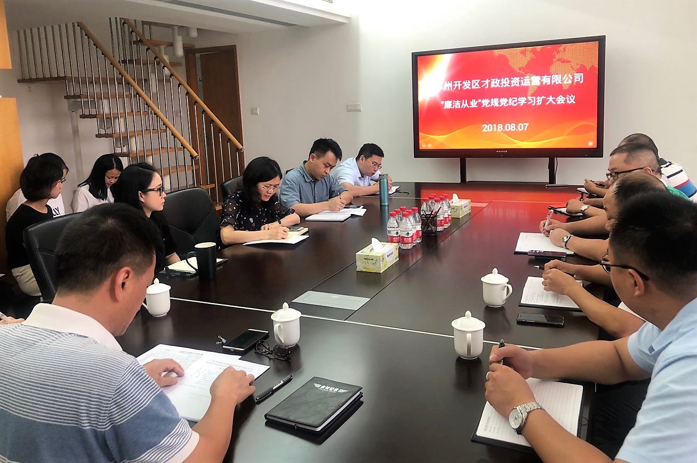 2018年8月7日下午,廣州開(kāi)發(fā)區(qū)人才工作集團(tuán)副總經(jīng)理李澤洪同志主持召開(kāi)分管部門(mén)和二級(jí)公司“廉潔從業(yè)”黨規(guī)黨紀(jì)學(xué)習(xí)擴(kuò)大會(huì)議。資產(chǎn)運(yùn)營(yíng)部、才政公司、才力公司全體黨員干部及職工參加了會(huì)議。這是國(guó)有企業(yè)深入貫徹落實(shí)習(xí)近平總書(shū)記黨建思想,全面提升新時(shí)代基層黨建工作質(zhì)量的常態(tài)化舉措。
