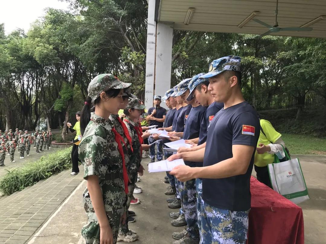 歷時(shí)一天的研學(xué)活動(dòng),在結(jié)營儀式中漸漸落下帷幕,教官們?yōu)樯倌陚冾C發(fā)研學(xué)證書,并帶領(lǐng)學(xué)生們在軍事基地進(jìn)行參觀,零距離接觸軍事裝備。
