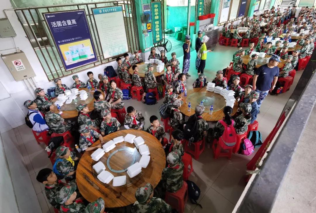 臨近午餐時(shí)刻,少年們跟隨研學(xué)導(dǎo)師來到黃埔青少年軍校,此時(shí)的教官們已備好午餐等待著少年們的到來。